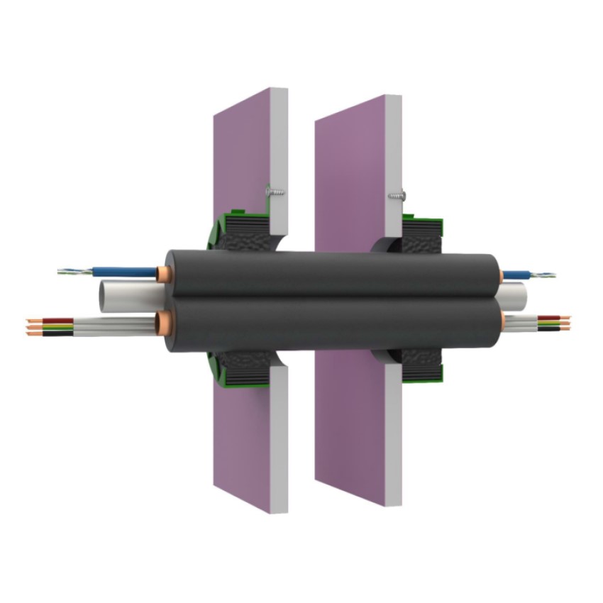 Couple with an infill of BOSS FireMastic-HPE™, MaxiCollars™ are a fast and easy to install solution for Paircoil bundles in 60min single layer plasterboard systems. The use of the MaxiCollar™ avoids having to install a localised plasterboard pattress that is often required for sealant only systems.