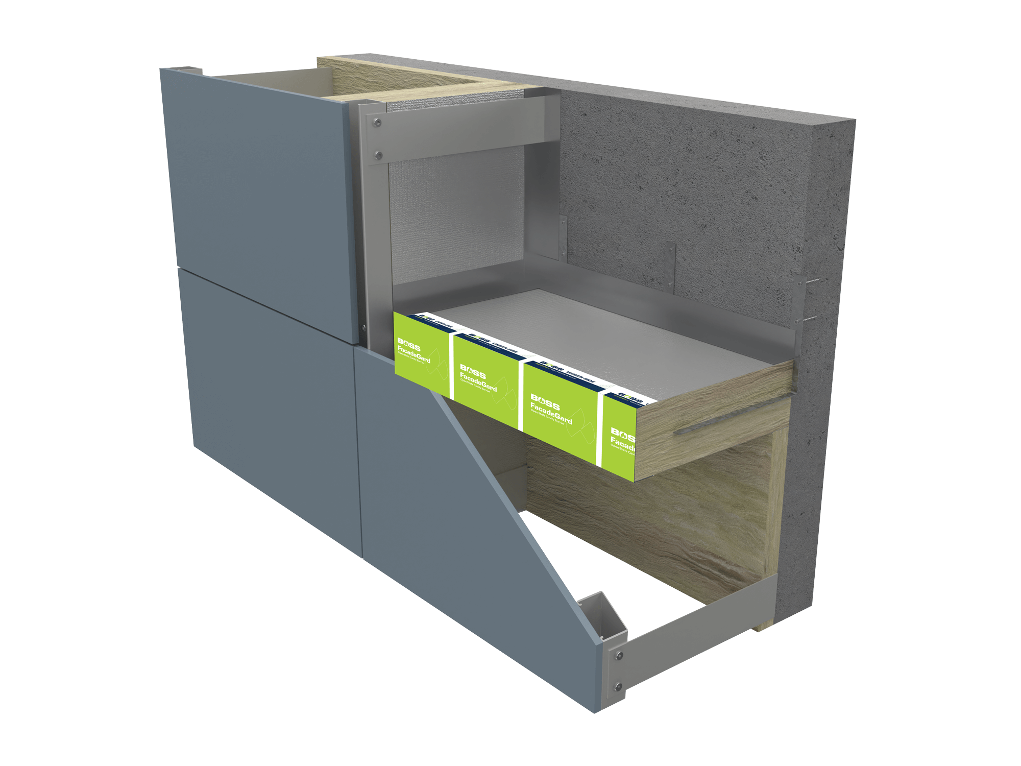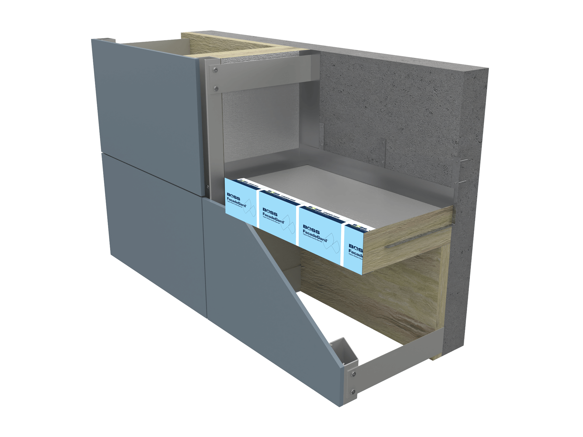FacadeGard™ is a high-performance Open State Cavity Barrier (OSCB) designed to protect ventilated rainscreen façade systems by preventing the spread of fire through cavity voids. Installed between the external façade cladding and the internal building structure, the system maintains façade ventilation during normal building operation and rapidly expands under heat to seal the cavity during a fire event. FacadeGard™ supports linear air gaps of 25mm or 50mm depending on the system type, allowing constant airflow and moisture drainage while maintaining façade system integrity.