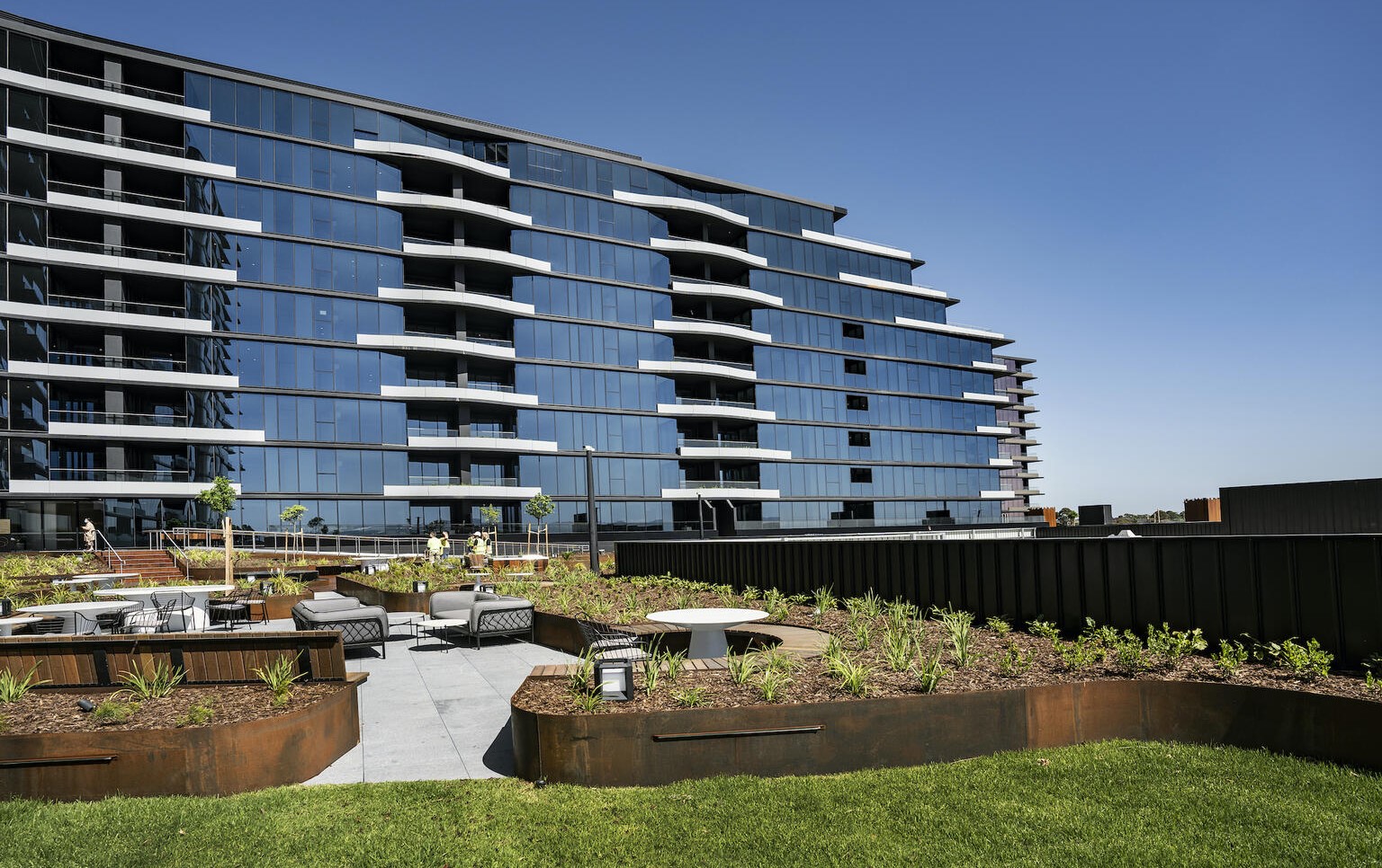 We have a warm & sunny afternoon in Melbourne today! The rooftop gardens of the beautiful & recently completed Sky Garden project would be a cracking place to relax! Sky Garden shows a high-quality building with premium services, finishes and fitments. Sky Garden incorporates a 4000sqm podium garden complete with a relaxation zone, entertainment lounges, vegetable gardens, a designated children’s play area and outdoor fitness areas with the amenity provided by The Glen Shopping Centre sitting below. Sky Garden is Melbourne’s first mixed-use development project that combines 536 apartments and an expansive garden oasis above The Glen.